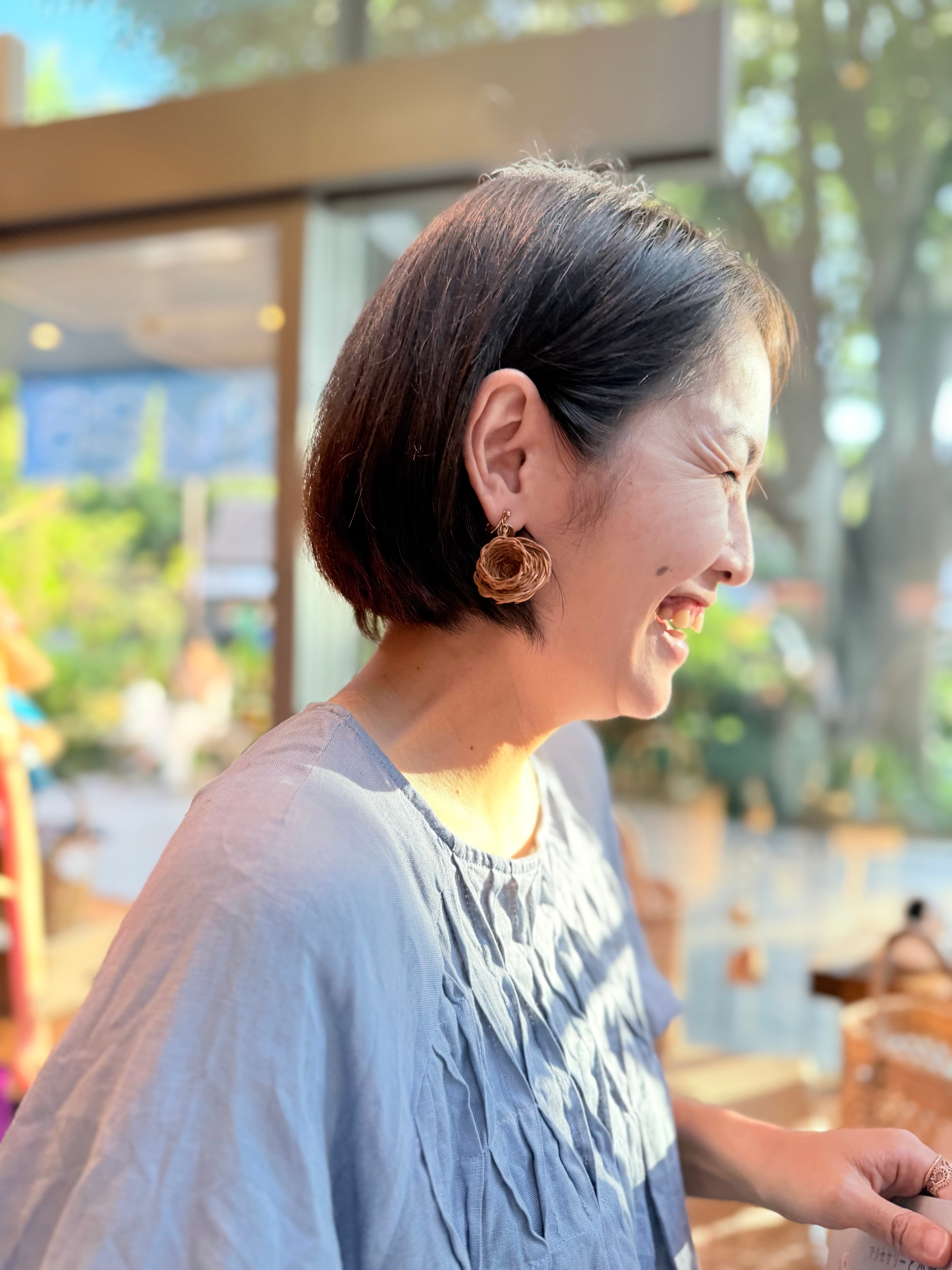 愛らしい「TEA CUP 耳飾り」の登場です。この耳飾りは、ティーカップを模したデザインで、身に着けるだけでデイリースタイルに華やかさをプラスします。細部までこだわり抜いたハンドメイド作品。軽やかな着け心地で、普段使いはもちろん、特別な日のコーディネートにも活躍するアイテムです。