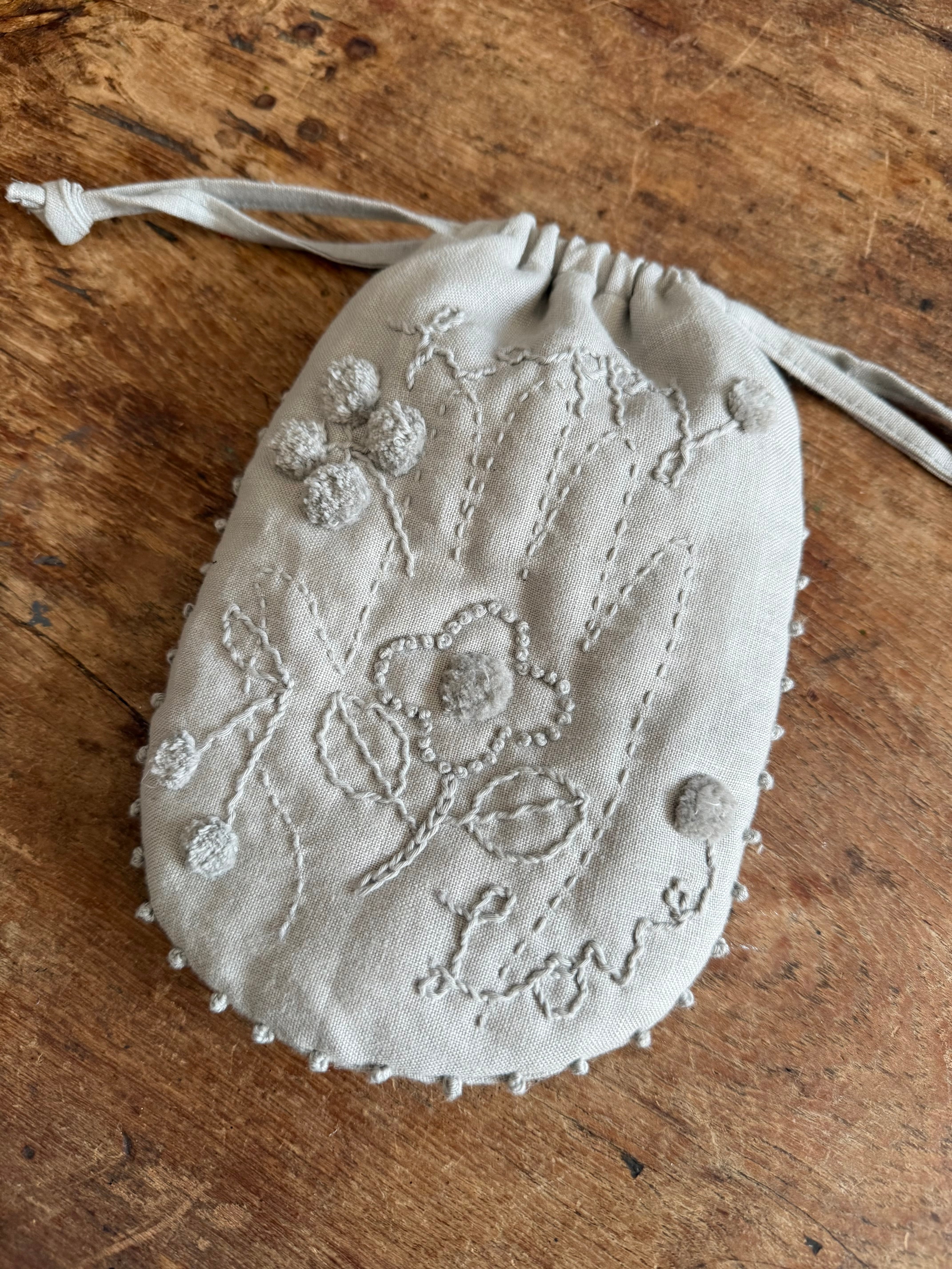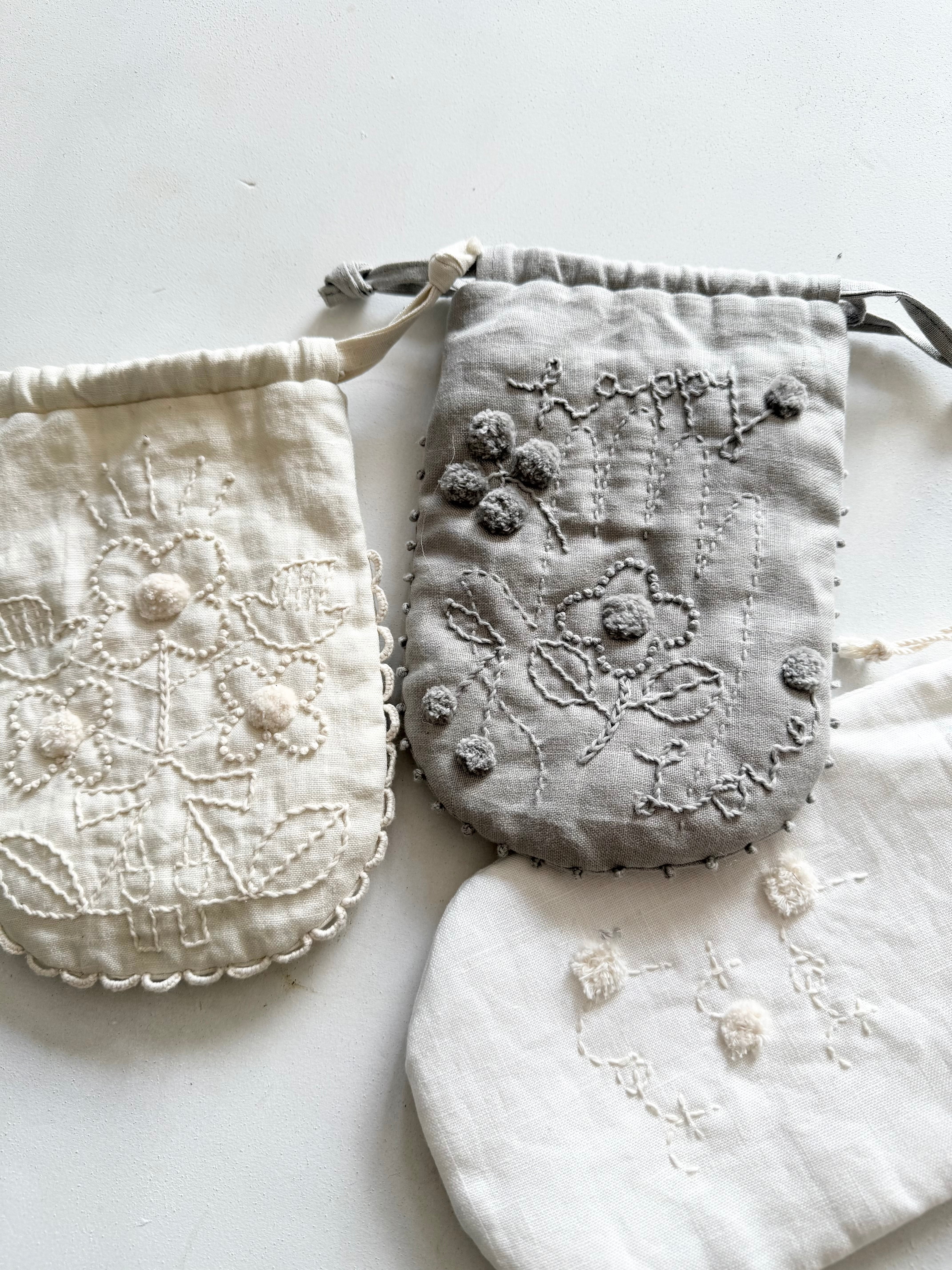 (ストーングレー)ポンポン巾着キット『私の手の中にあるしあわせ』