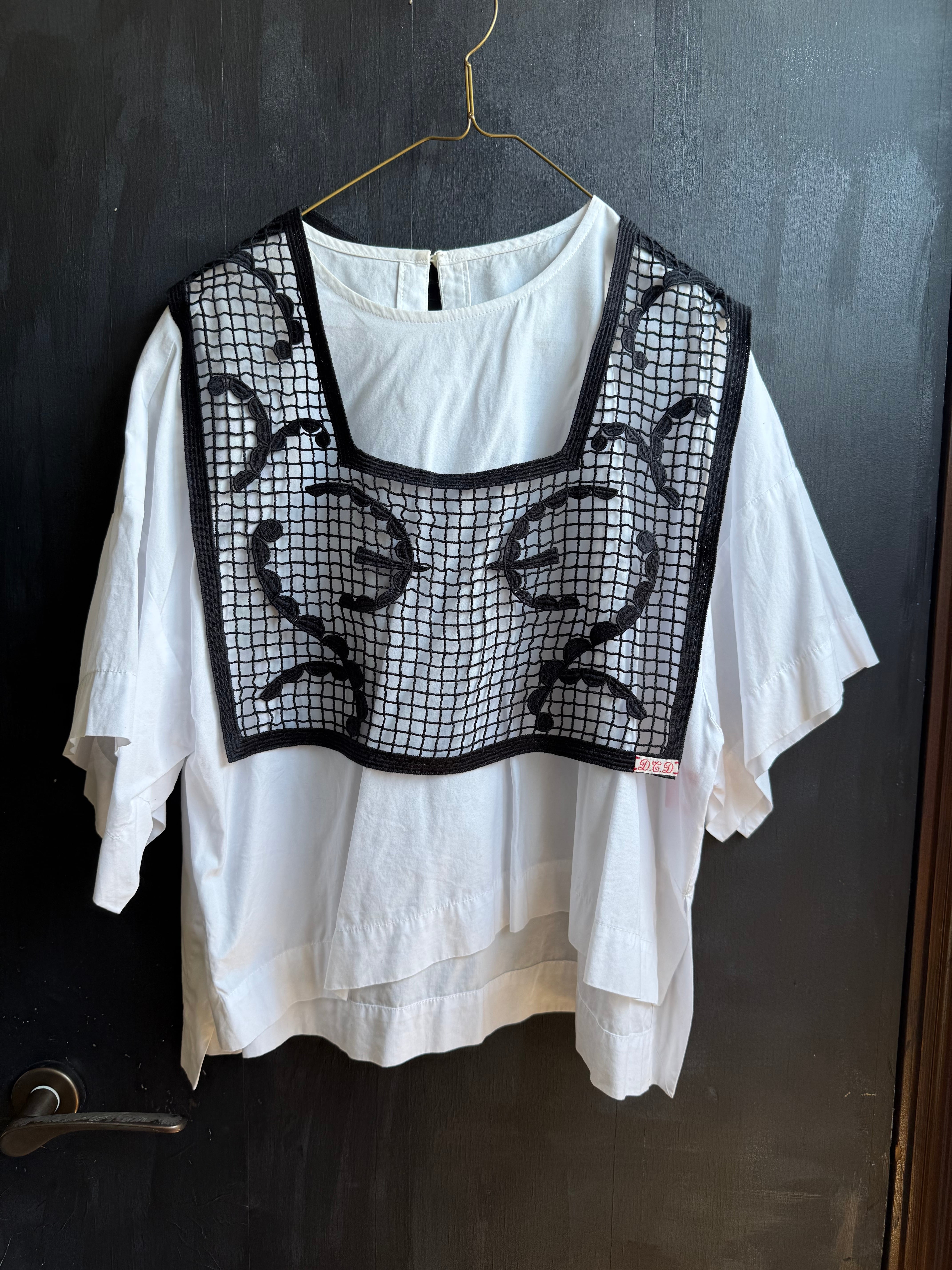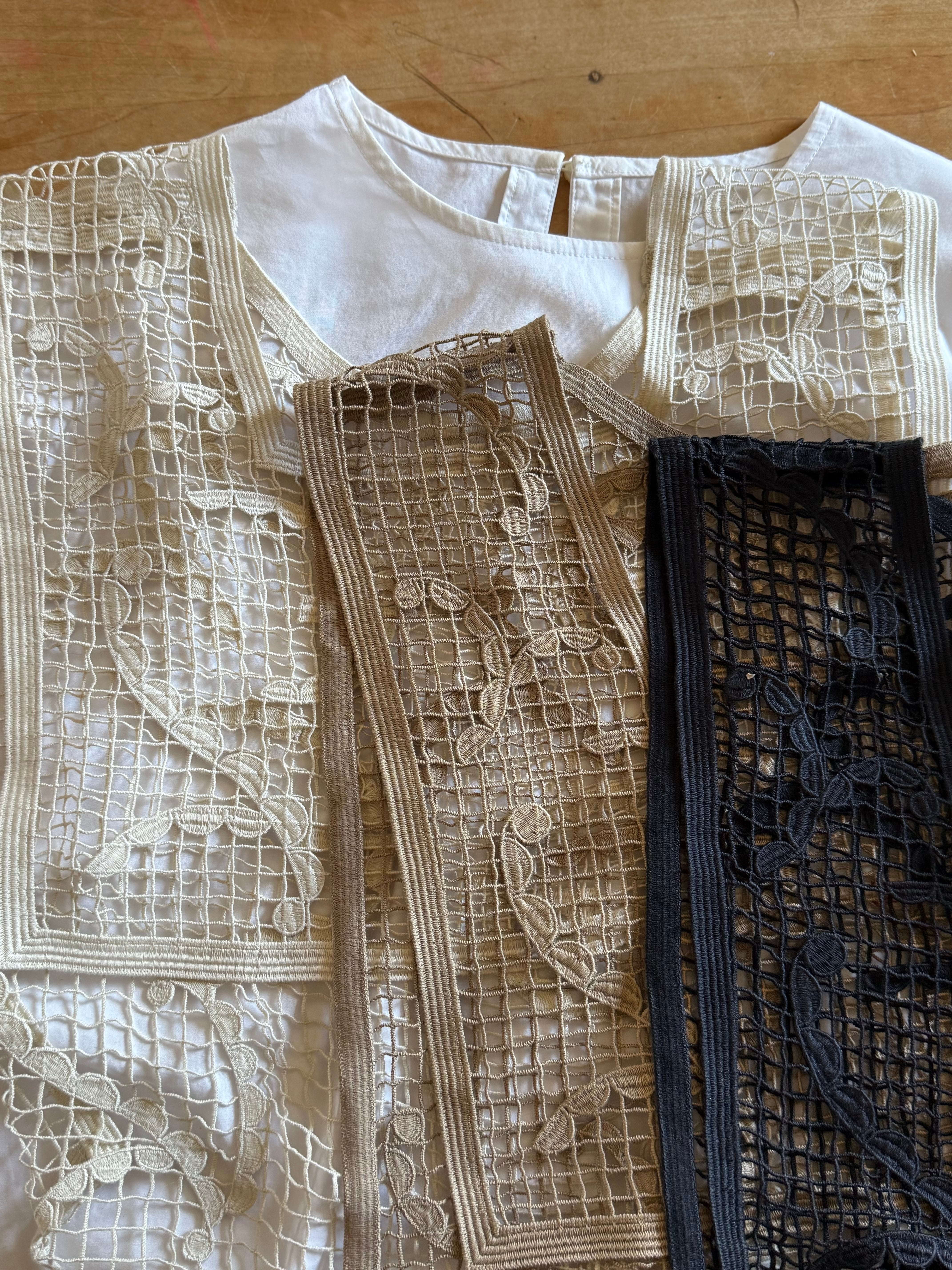 堀川波デザインの鳥をモチーフにしたクラシカルな魅力あふれる「つけ襟レースベスト」が登場です!こちらのつけ襟は、軽やかなレース素材を使用し、どんなコーディネートにも華やかさをプラスします。シンプルなTシャツの上からの着用でいつものTシャツの雰囲気が変わります。
