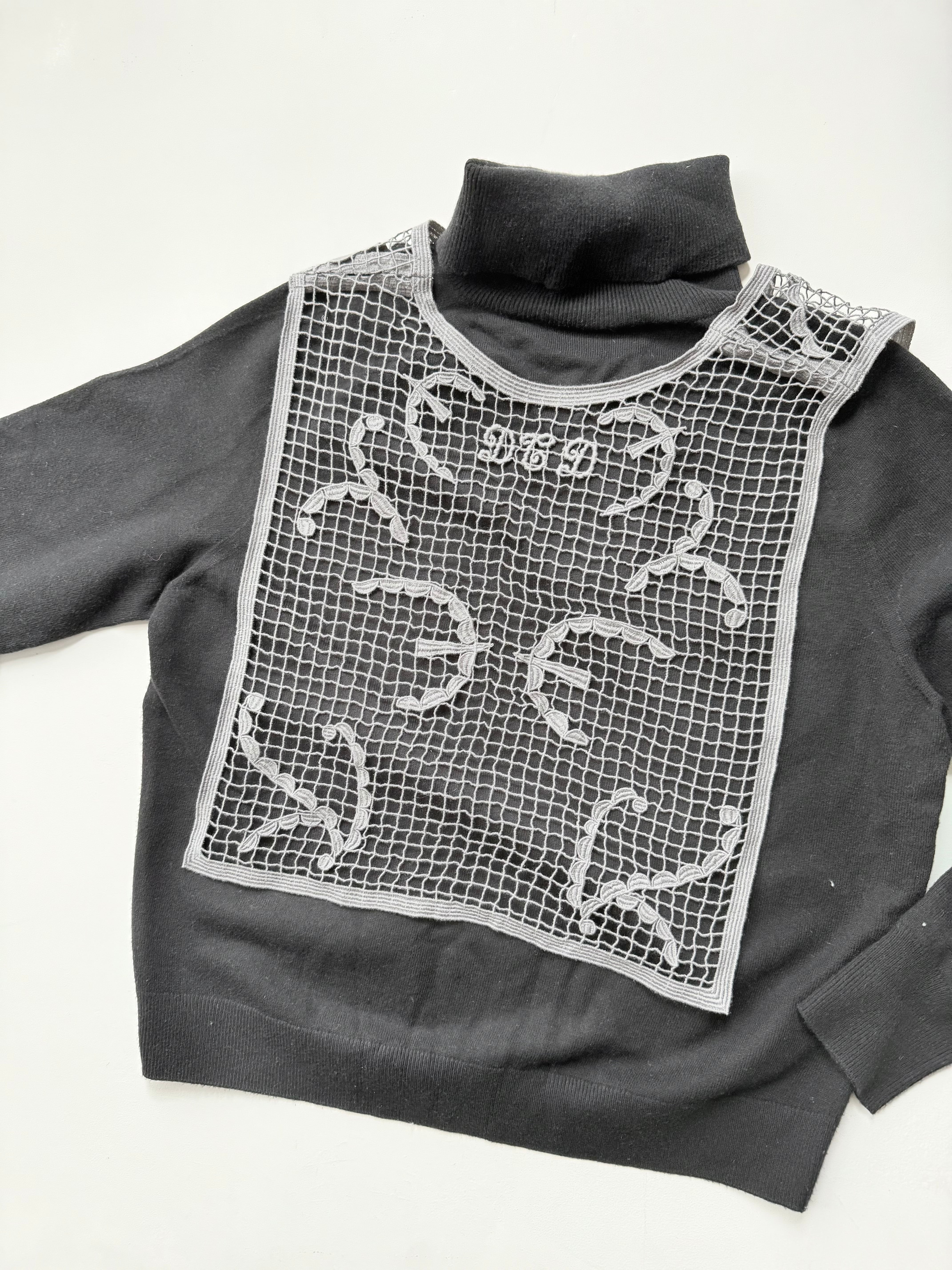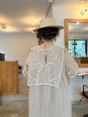 堀川波デザインの鳥をモチーフにしたクラシカルな魅力あふれる「つけ襟レースベスト」が登場です!こちらのつけ襟は、軽やかなレース素材を使用し、どんなコーディネートにも華やかさをプラスします。シンプルなTシャツの上からの着用でいつものTシャツの雰囲気が変わります。