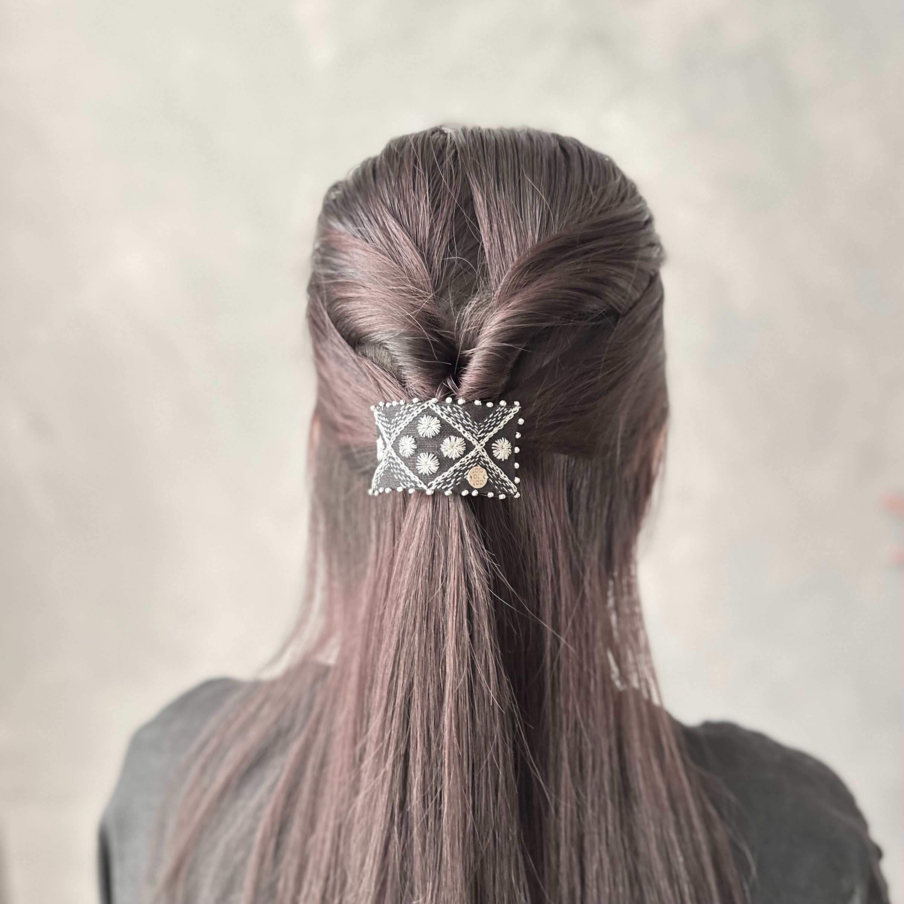 BLACK(ひな菊が咲く公園)SASHIKO STITCH ポニーフック